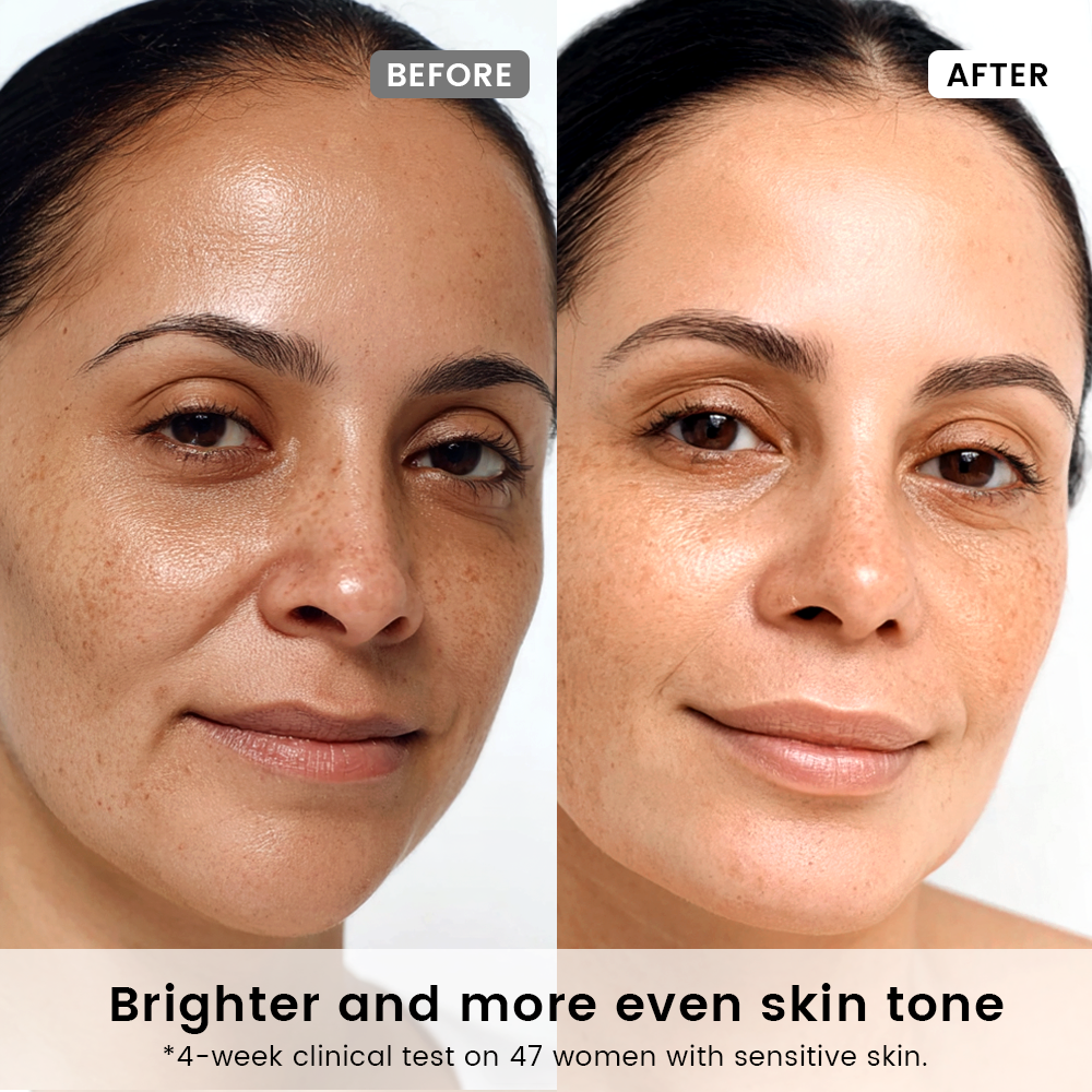 The Tone Correcting Serum inhibits melanin production to brighten skin and reduce dark spots.