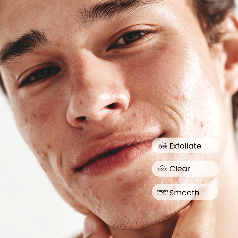 Clear & Smooth: Gently exfoliates, unclogs pores, kills acne-causing bacteria, and reduces breakouts.