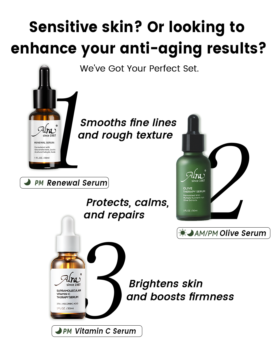 Unlike other olive serums on the market that only hydrate, Alra Olive Serum targets the root causes of skin issues like inflammation and oxidative stress. It’s powered by rare olive extracts from Italy, Spain, and France—ingredients proven to soothe sensitive skin, repair the skin barrier, and fight signs of aging.