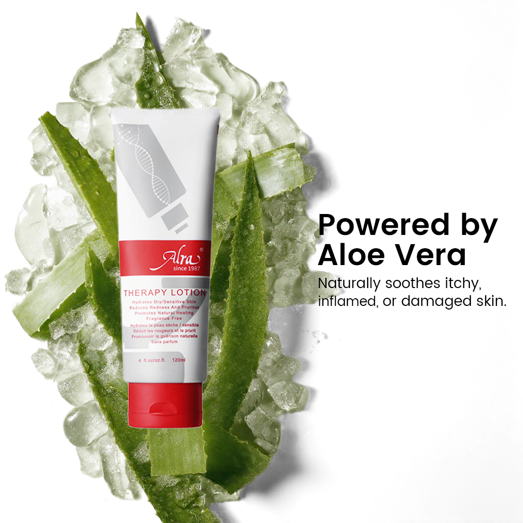 To restore hydration and reduce flakiness, use fragrance-free, lipid-replenishing products like Alra Therapy Lotion, which contains lanolin and phytosterols to soothe and seal in moisture.